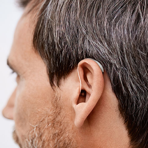 A traditional behind-the-ear (BTE) hearing aid is both versatile and able to provide significant volume for patients who require more power. They are able to fit any hearing loss, but are more commonly recommended for patients presenting with a severe or profound hearing loss. Behind-the-ear hearing aids consist of the body of the hearing aid, and an earmold. The earmold is attached to the hearing aid via a tube that needs to be changed every six months by the audiologist. Behind-the-ear hearing aids are also available in both a battery operated or rechargeable model.