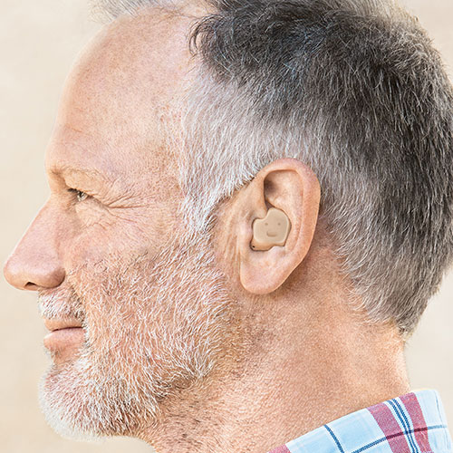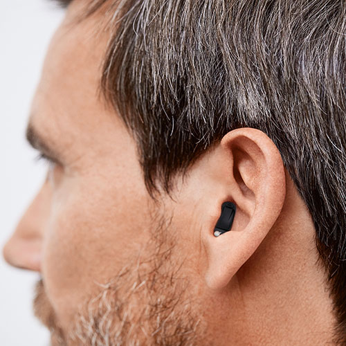 Invisible-in-the-canal (IIC) hearing aids are the smallest available custom hearing aid, and require a slightly deeper earmold impression than the other custom styles discussed in this section. IIC hearing aids are an ideal option for patients with a mild-to-moderate hearing loss looking for a completely invisible solution. At this time, the invisible-in-the-ear hearing aids are only battery operated, and do not come rechargeable. The depth of the hearing aid in the ear depends on the patient’s ear canal length and size and can be discussed in detail at the hearing test appointment.